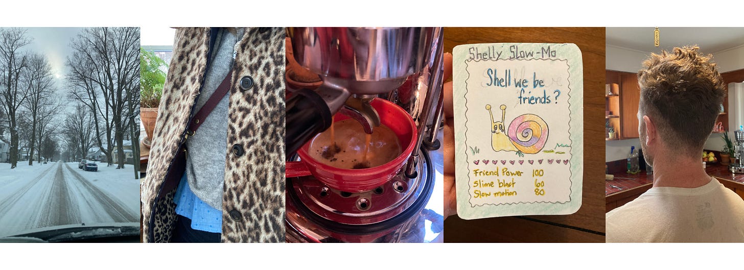 P.S. We’ve had a looooooong winter. You too? If you’re looking for an antidote, I recommend picking up a copy of Moominland Midwinter, my current re-read aloud with my 2 little ones. Otherwise, life for us has looked like lots of navigating illness, drinking espresso from a gorgeous, gifted Italian espresso maker(!!!), giving my professor husband a faux hawk, and doodling with my kids on these snowy days.